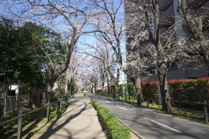 遊歩道沿いは春になると桜並木ができるので、お花見がてらフラッと散歩してみるのもいいでしょう。