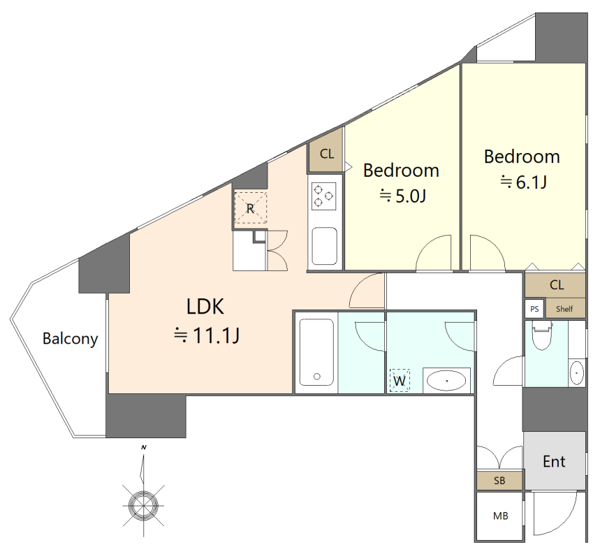 ・全戸角部屋のレイアウトで独立性が高く、隣戸を気にせず静かに生活できる。